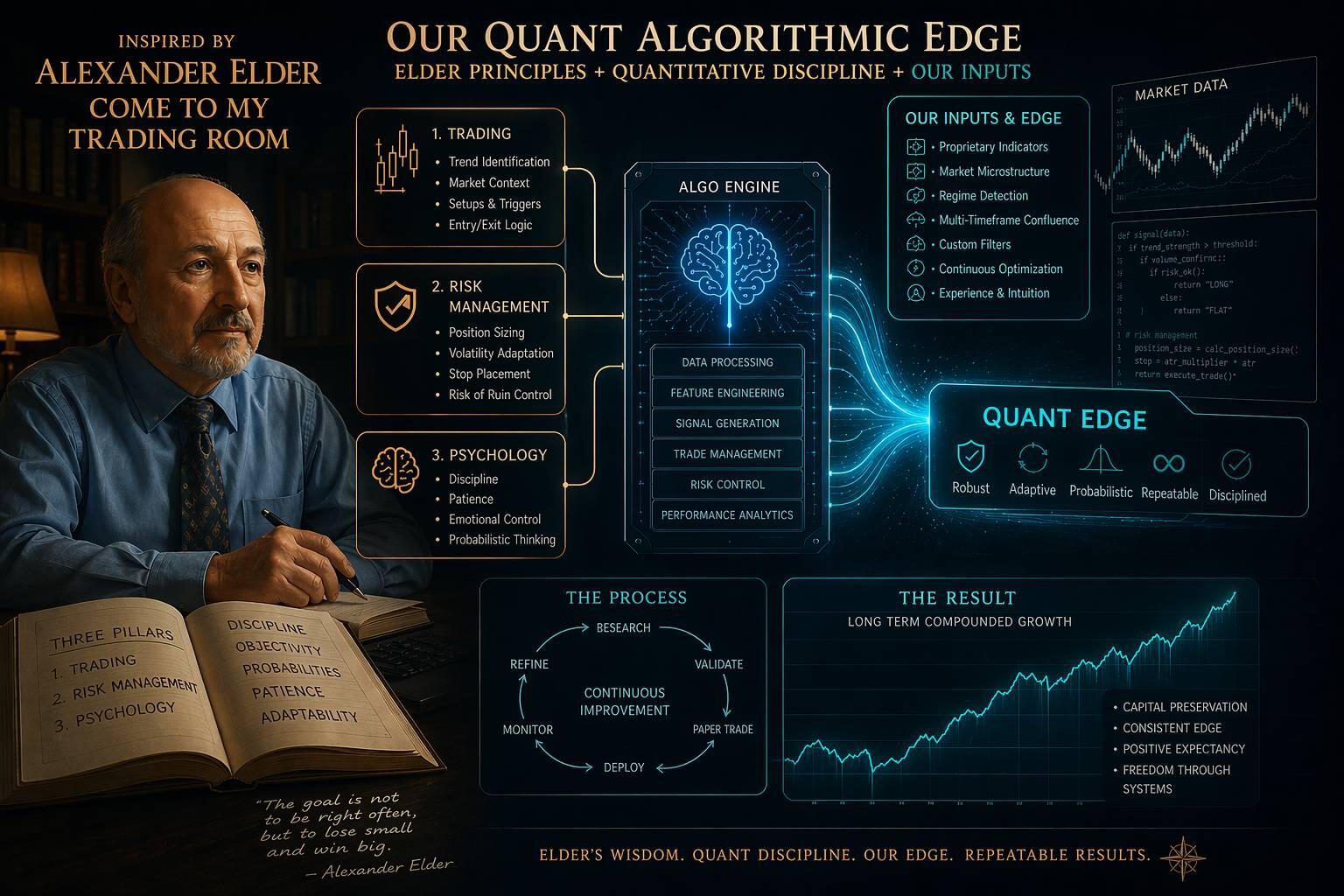 A disciplined fusion of trading psychology, risk management, and systematic execution, this framework transforms market data into actionable insight. Inspired by proven principles and enhanced with quantitative precision, it emphasizes consistency, adaptability, and probabilistic thinking. By combining structured algorithms with data-driven modeling and statistical validation, the approach aims to minimize risk, capture repeatable opportunities, and achieve sustainable long-term growth in dynamic markets.